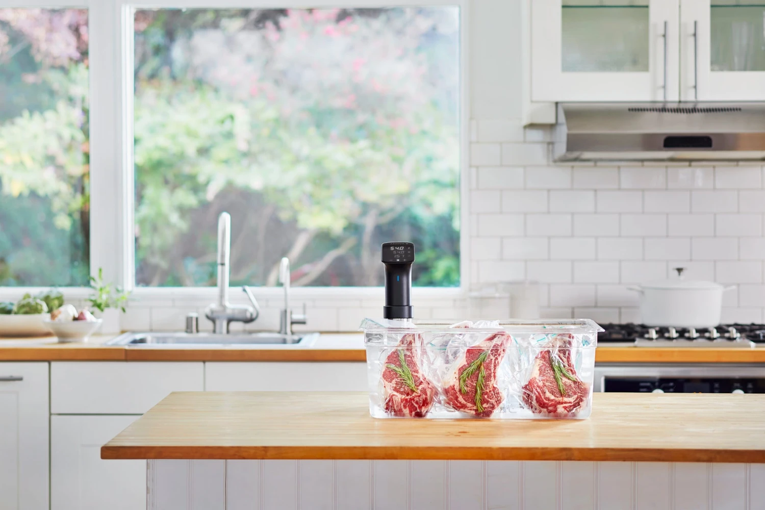 The Anova App allows you to control and monitor your cooking on-the-go. Simply connect the device to your phone, and whenever you have internet connection you’re able to start, stop or check on what is cooking.