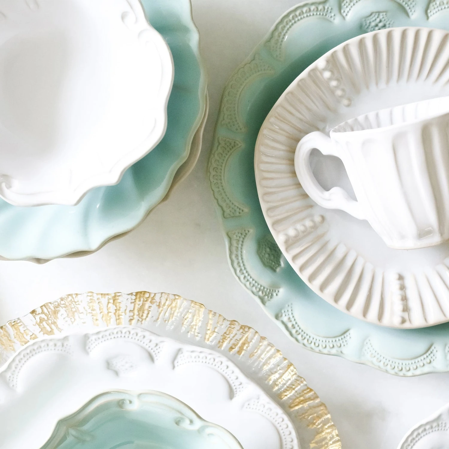 Italian for enchantment, Incanto is inspired by Italy’s art, landscape, and Venetian history. The stripes on the Incanto Stone Stripe Salad Plate pay homage to the stately columns of the Palladian villas along the Brenta River. The plate is made to be mixed and matched with other designs in the Incanto collection.