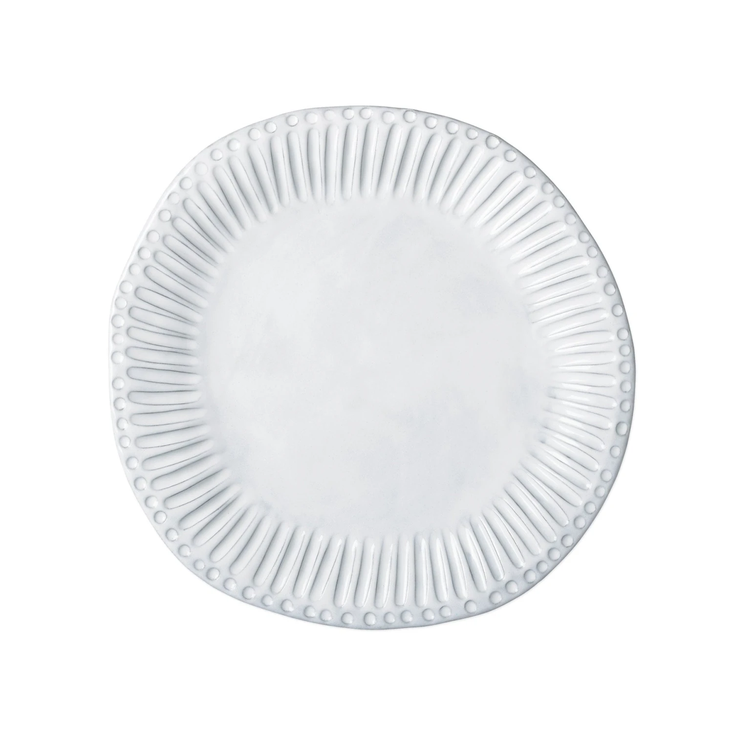 Italian for enchantment, Incanto is inspired by Italian art, the landscape, as well as Venetian history. The stripes on the Incanto Stripe European Dinner Plate pay homage to the stately columns of the Palladian villas along the Brenta River. The plate is made to be mixed and matched with other designs in the Incanto collection. Of the collections two dinner plates, the European size is smaller.