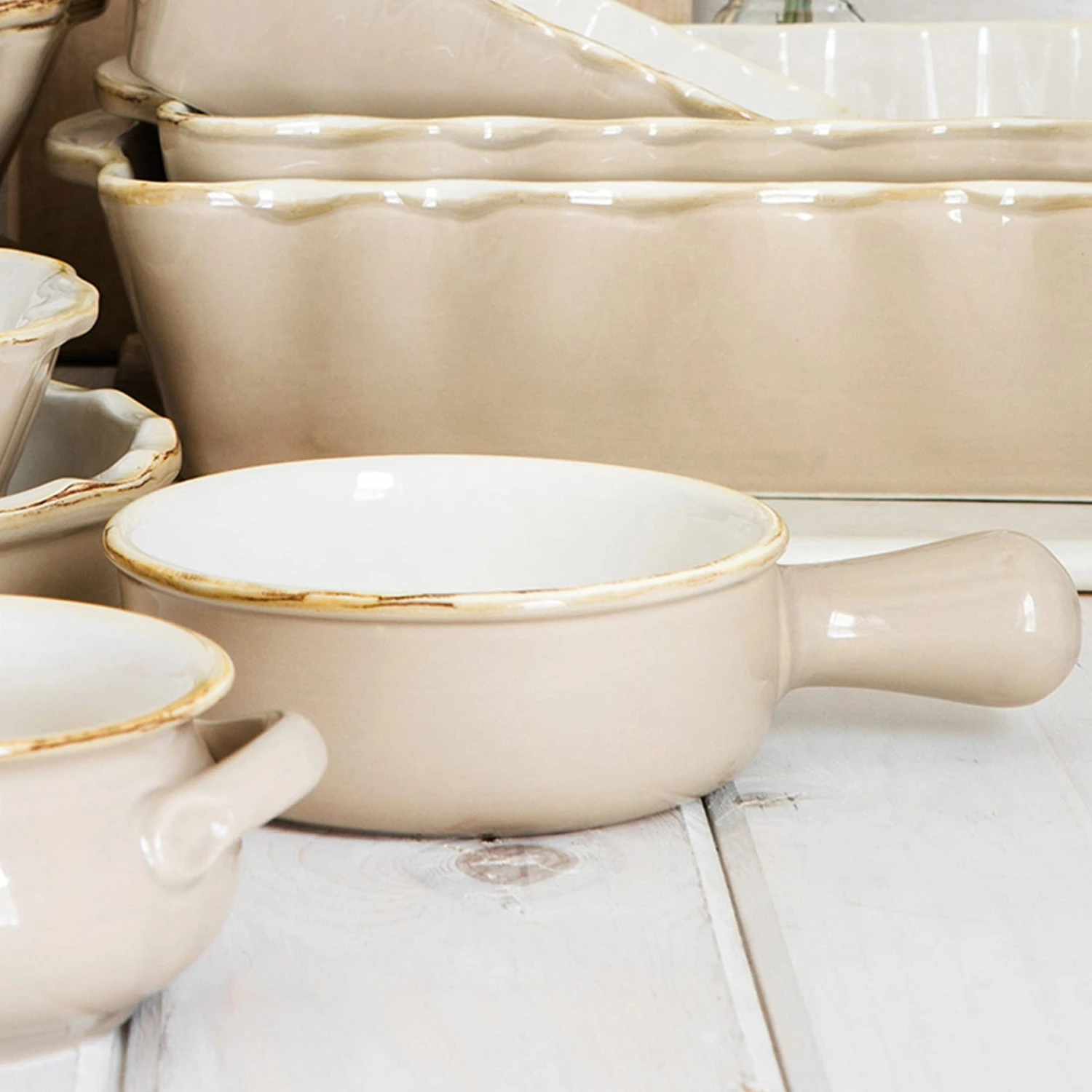 Oven Safe – VIETRI’s casserole and baking dishes can be used in most conventional ovens and dishwashers. They are handcrafted of very dense clays and fired at high temperatures, making them heat resistant up to 400°F. Do not use casserole lids in the oven, unless otherwise noted. Hot casseroles and baking dishes should never be placed on cool, damp, or unprotected surfaces. VIETRI bakeware should never be taken directly from the refrigerator to the oven due to the extreme temperature change, nor should it be placed directly from oven to freezer. The handles of these pieces are decorative and should not be used for support. Please remove the bakeware from the oven by holding the body of the dish, supporting the base.