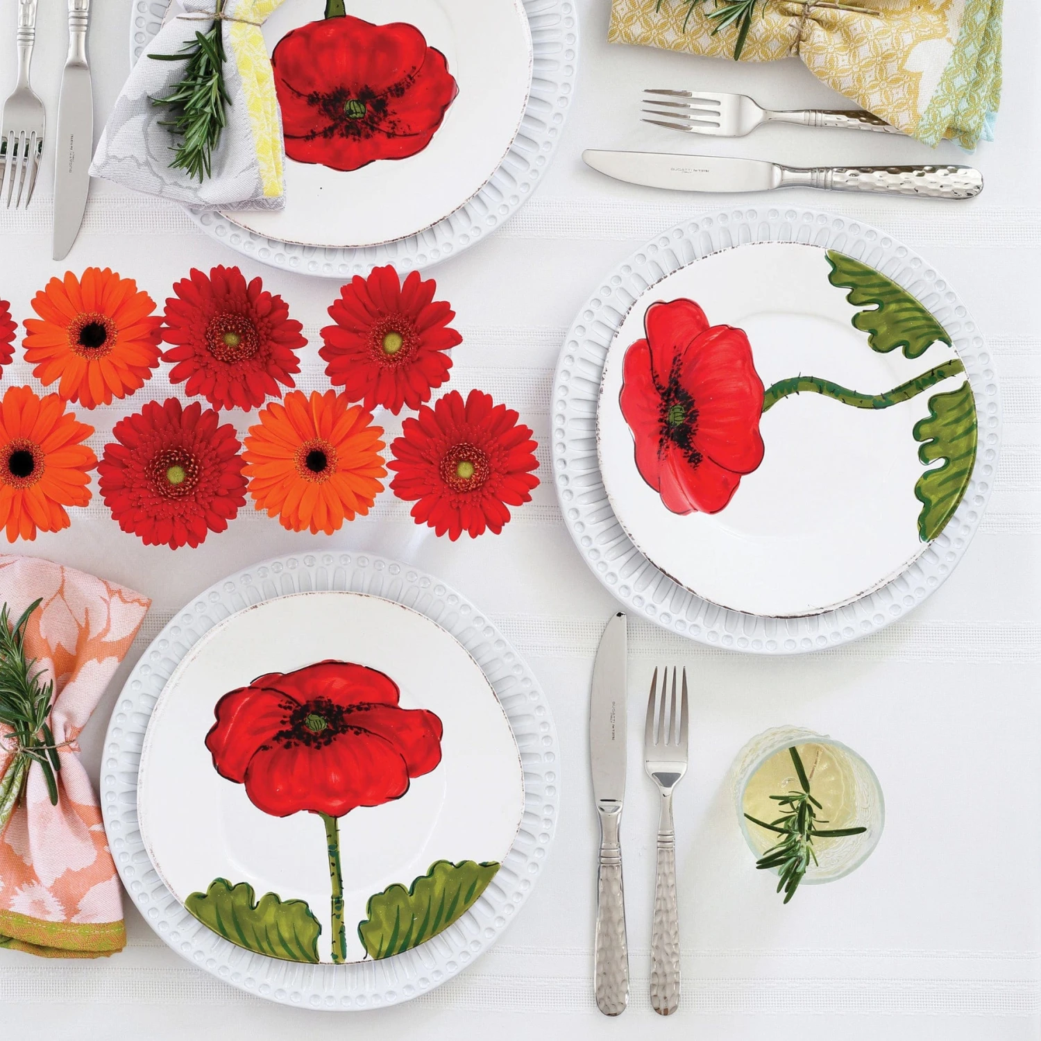 The perfect plate for salad, dessert, or appetizers, the Lastra Poppy Salad Plate brings the warmth of Tuscany to your table with rustic sophistication. An overlapping wooden mold, used for centuries to form cheeses throughout Italy, inspired this collection.