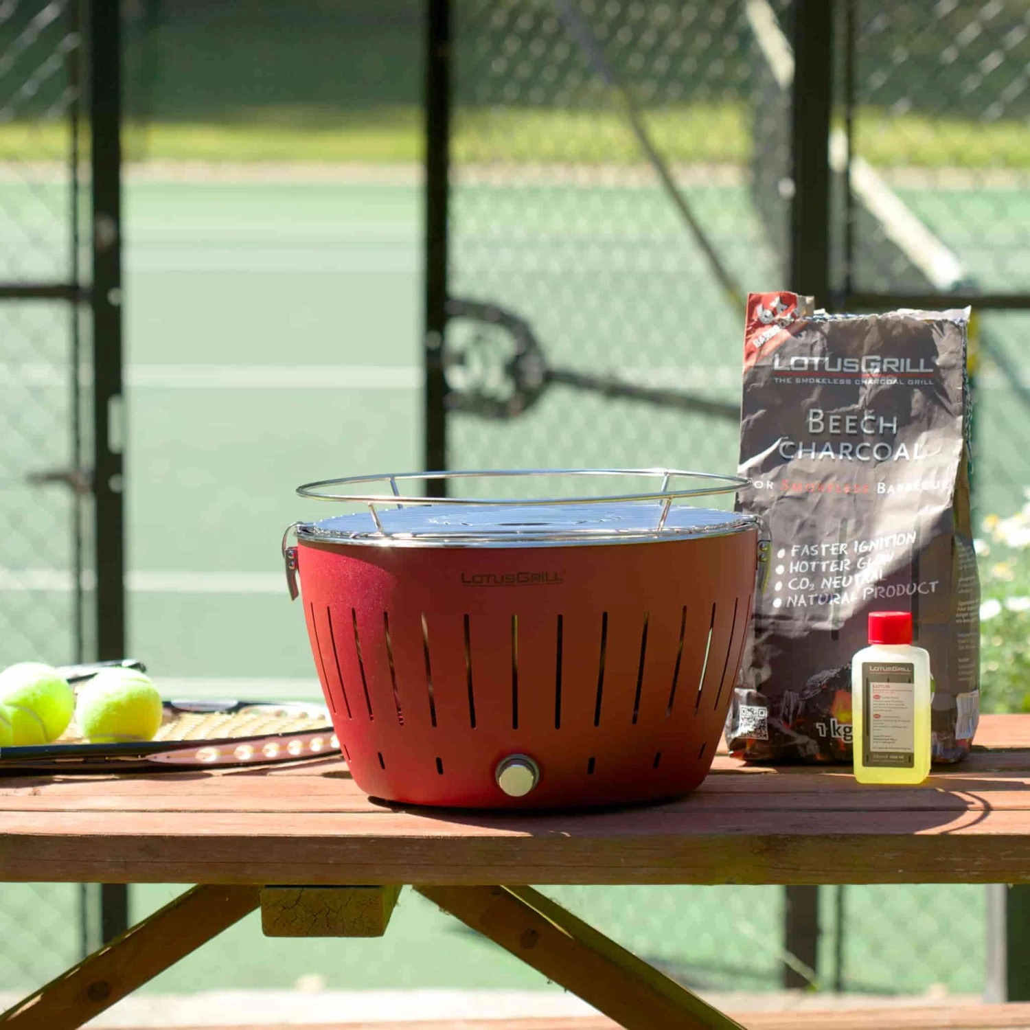 The Lotus Grill XL in red gives you the chargrilled flavours of a coal BBQ – without the smoke! The Lotus grill is a compact and portable BBQ that is ready to go in under 5 minutes, virtually smokeless! This XL-sized grill feeds up to 10 people, as this generous grill has a surface 60% larger that a standard barbecue. Ideal for a feast of sausages, burger and more, this is the perfect BBQ for entertaining family and friends.Â
