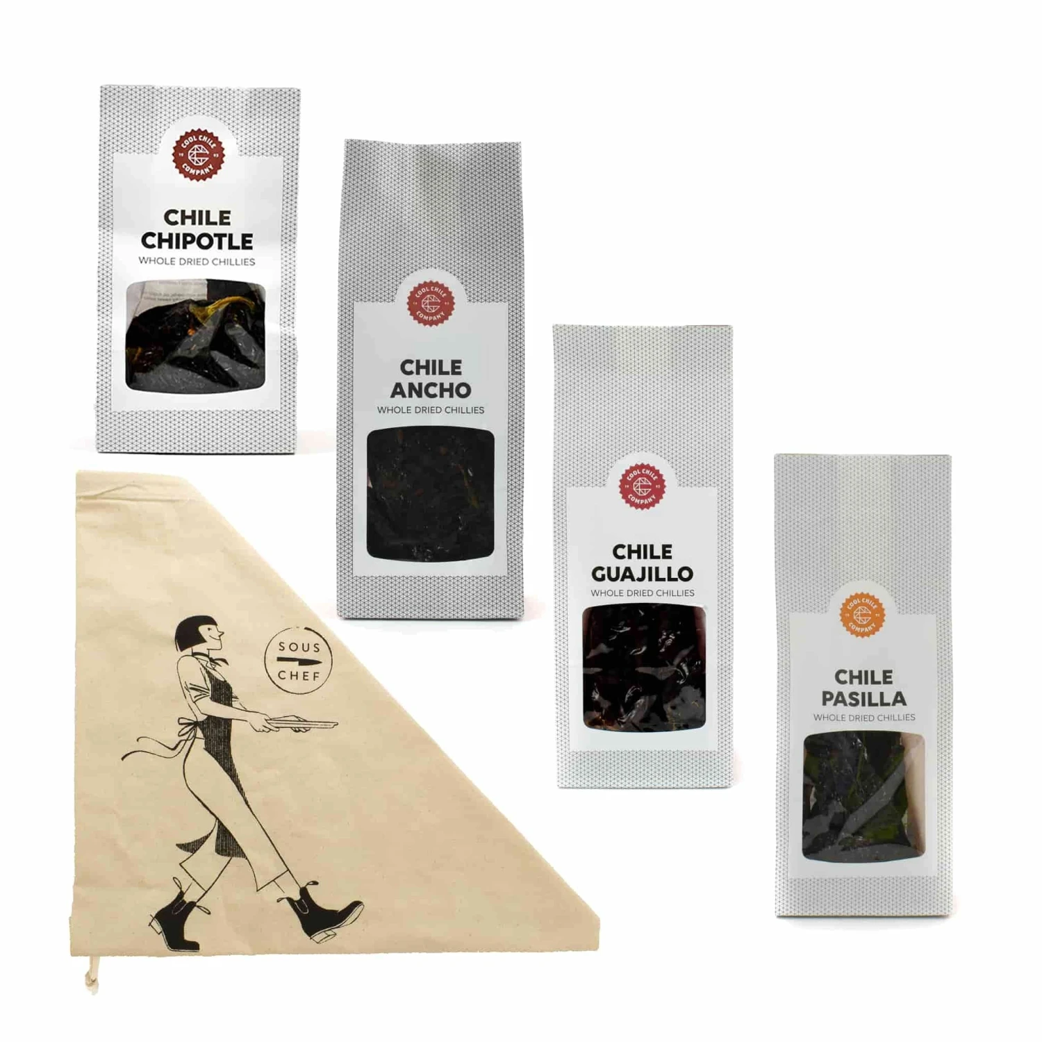 Discover the difference between the mild fruity-smokiness of ancho and the chocolatey warmth of guajillo, with this Mexican chilli selection.