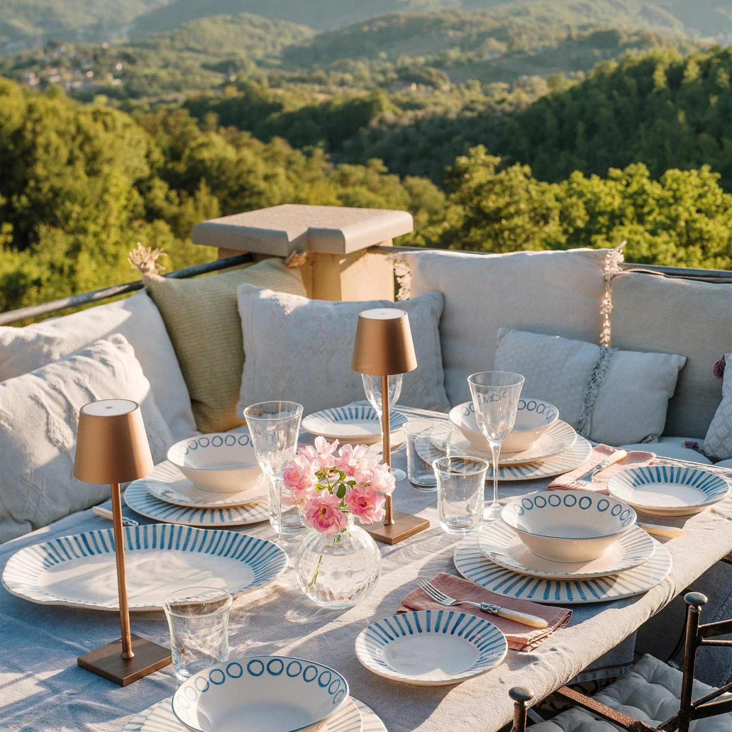 The Modello Salad Plate is inspired by the fashion trends lining the runways of Milan, and it brings sophistication and durability to everyday dining with a lively stripe design.