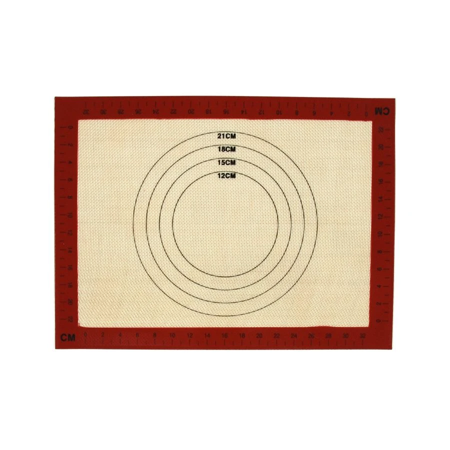 This fibre-glass reinforced silicone pastry mat is designed for professional use. The non-stick flexible silicone mat is marked with different sized concentric circles and measurements along both edges for rolling out pastry.