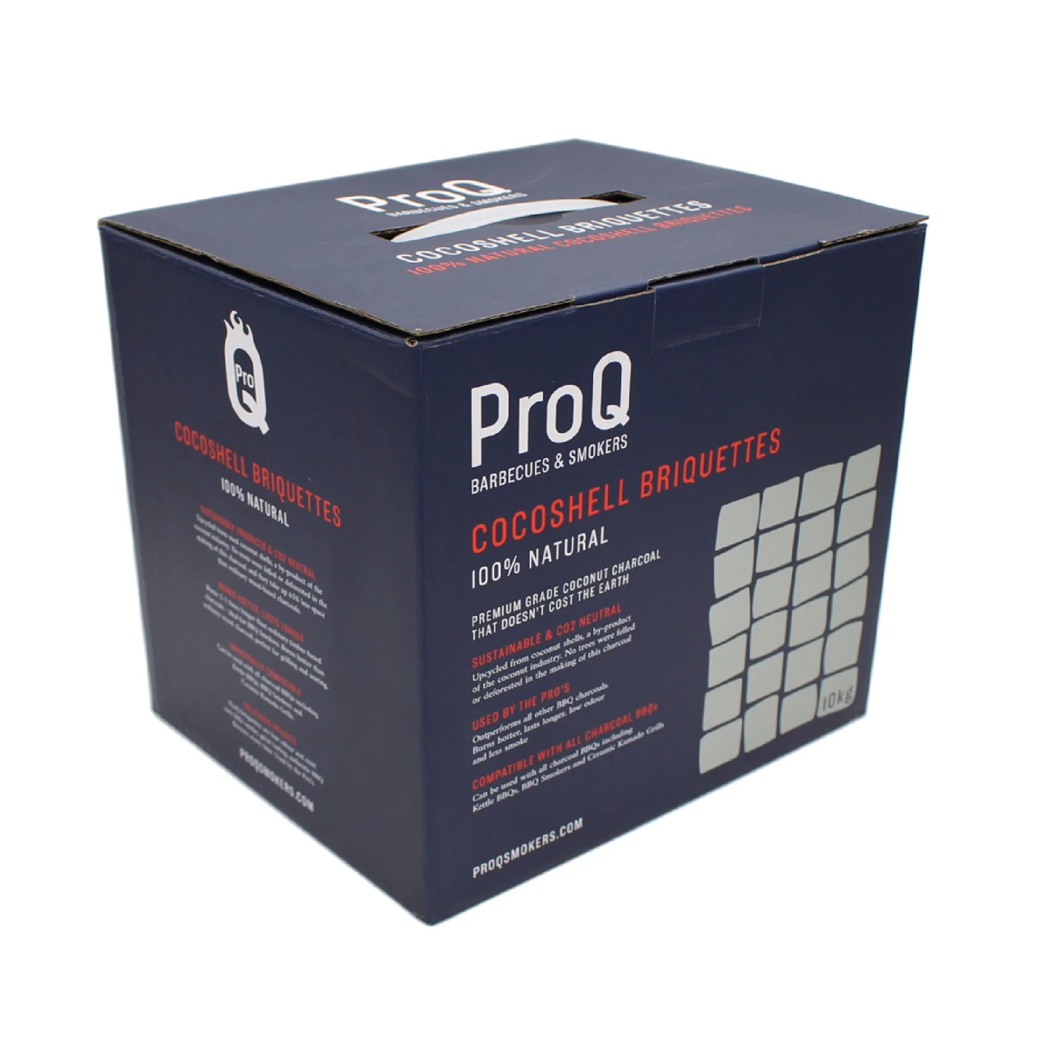 ProQ cocoshell briquettes are a revolutionary new barbecue charcoal. The compact bricks burn for up to 3 times longer than standard lump wood charcoal, which means less top-ups and waiting for new coals to get hot. And because they’re made from compressed coconut shells, they’re also a sustainable option.