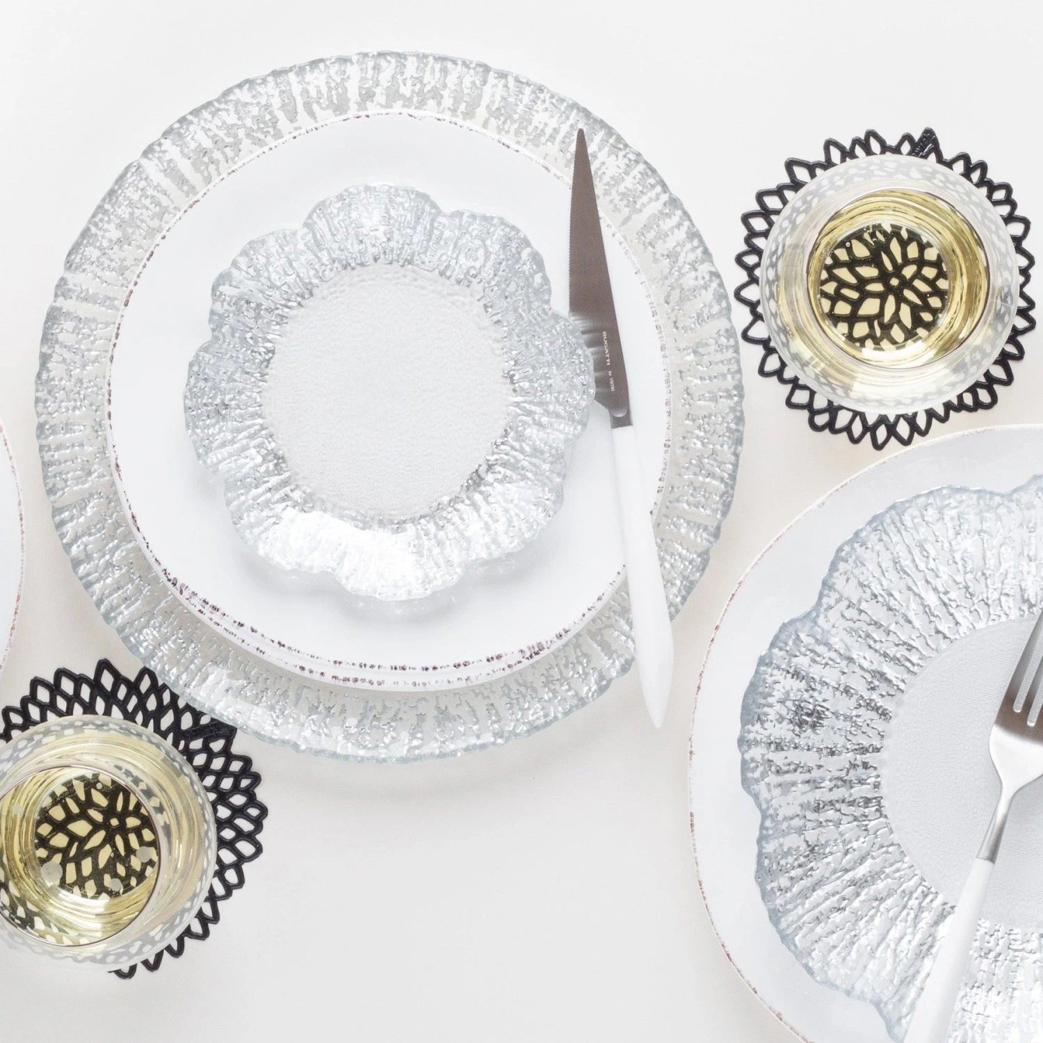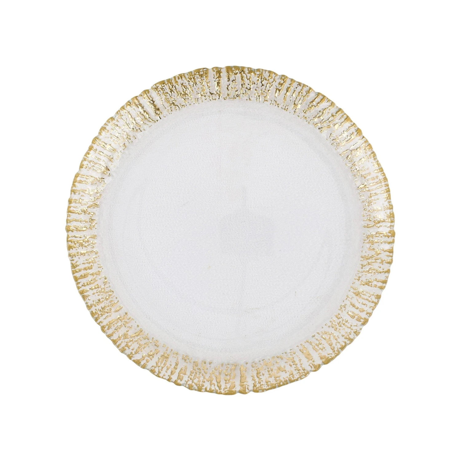 With glowing strands and beautiful texture, the Rufolo Glass Dinner Plate brings luster, glamour, and irresistibly Italian style to your table.